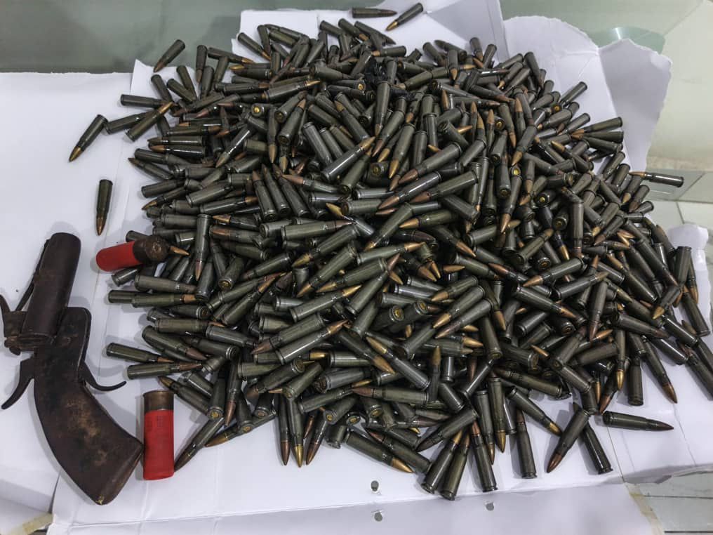 Recovered items included 2,186 rounds of live 7.62 x 39mm AK-47 ammunition, two AK-47 rifles with obliterated serial numbers, a locally fabricated pistol with two live cartridges, and five operational motorcycles reportedly used for abductions.