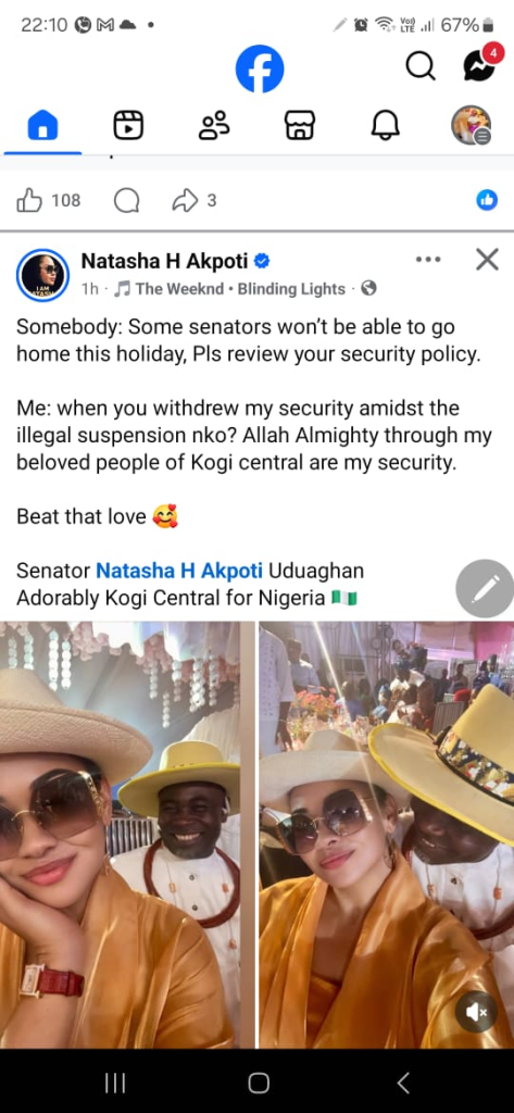 “When you withdrew my security amidst the illegal suspension nko? Allah Almighty through my beloved people of Kogi central are my security. Beat that love,” the Senator posted.