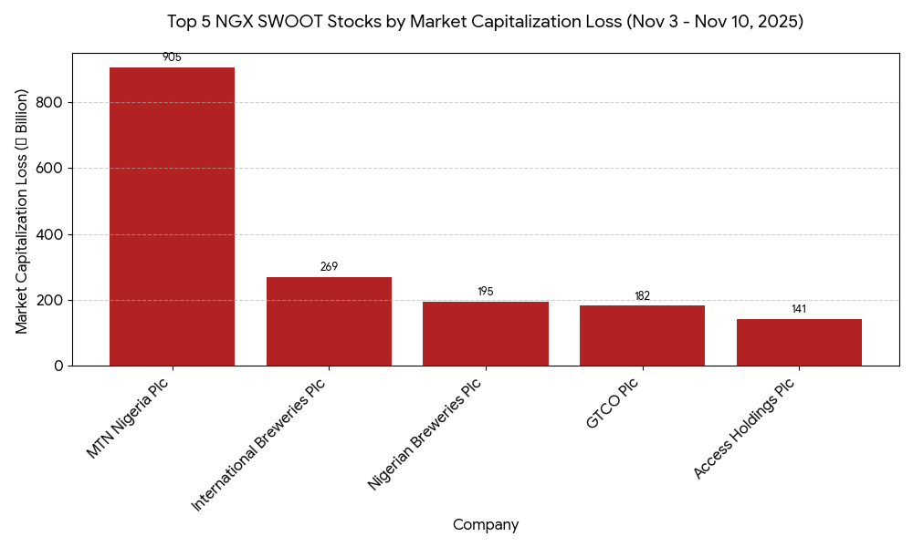 | MTN Nigeria Plc | Telecommunications | $-904.91 billion$ | $-8.2%$ | Profit-taking, weak investor sentiment |