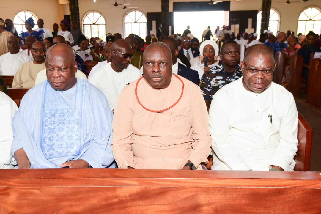 Delta State Governor, Rt. Hon. Sheriff Oborevwori, former Governor of Delta State, Chief James Ibori, former Chief of Defence Staff, Gen. Alex Ogomudia, on Friday, attended the funeral mass of Late Chief Raphael Odiaka Ezeoba.