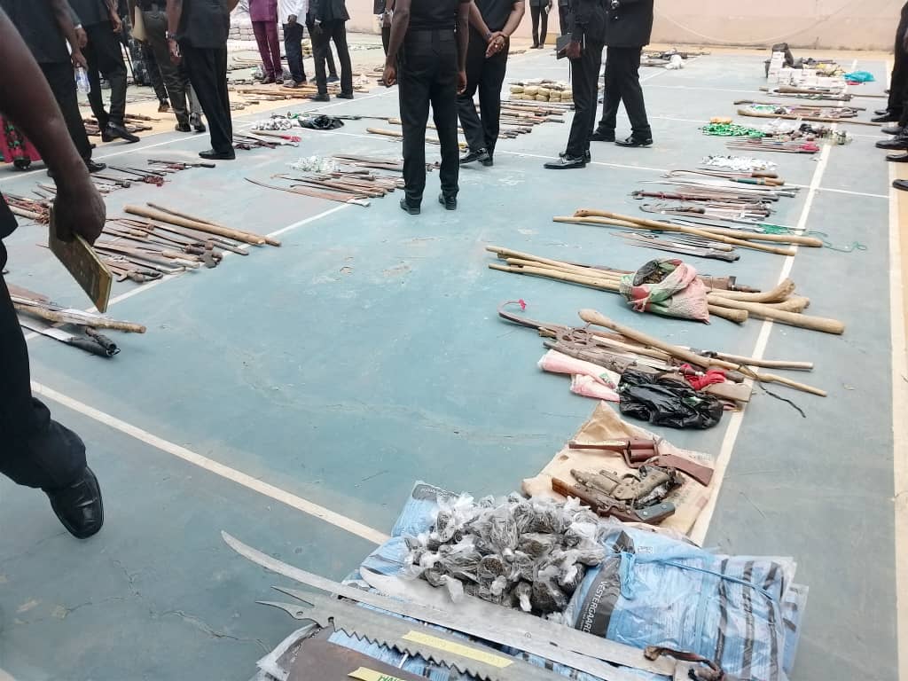 Other recoveries made during the month include three AK-47 rifles, three English pistols, three revolver pistols, one locally made AK-47 rifle, one dane gun, two locally made pistols, seven live rounds, and five empty shells. The police also recovered two motor vehicles, two tricycles, 13 motorcycles, three cows, assorted stolen properties, and dangerous weapons such as swords, cutlasses, knives, and axes.