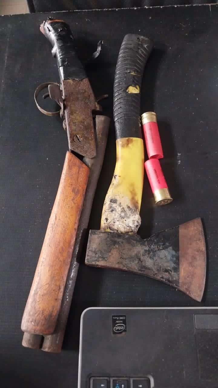 The police said the suspects were unable to provide a satisfactory explanation for their movement at about 3:00 a.m., prompting a search that led to the recovery of one locally made cut-to-size double-barrel gun, a battle axe, one live cartridge, and one expended cartridge.