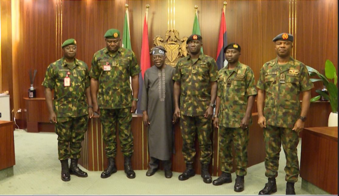 President Bola Ahmed Tinubu on Monday met with the newly appointed Service Chiefs at the Presidential Villa, Abuja, in their first official engagement since assuming office.